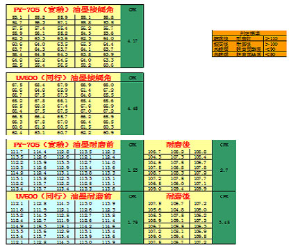 PY-705印刷厚度CPK為(UV1 1.58;UV2 1.45) ,表現(xiàn)較為穩(wěn)定;