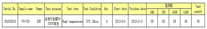 測試結果:由資料可看出,品裕PY-705與同行UV600 PBT1與PBT2阻值差異沒有明顯變化